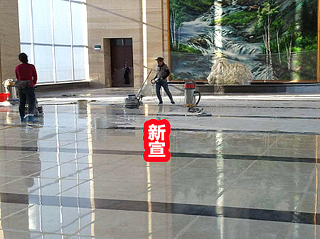 石材在使用若干年后,表面會老化,嚴重影響美觀,晶面硬化處理是經過粉磨劑研磨,使化學藥劑與石材中的鈣成分發生化學反應,在石材表面形成一層新的晶化物質,防止污漬滲入石材內層,增強抗磨性,使石材折射出天然的光澤,以達到一定的硬度和亮度。